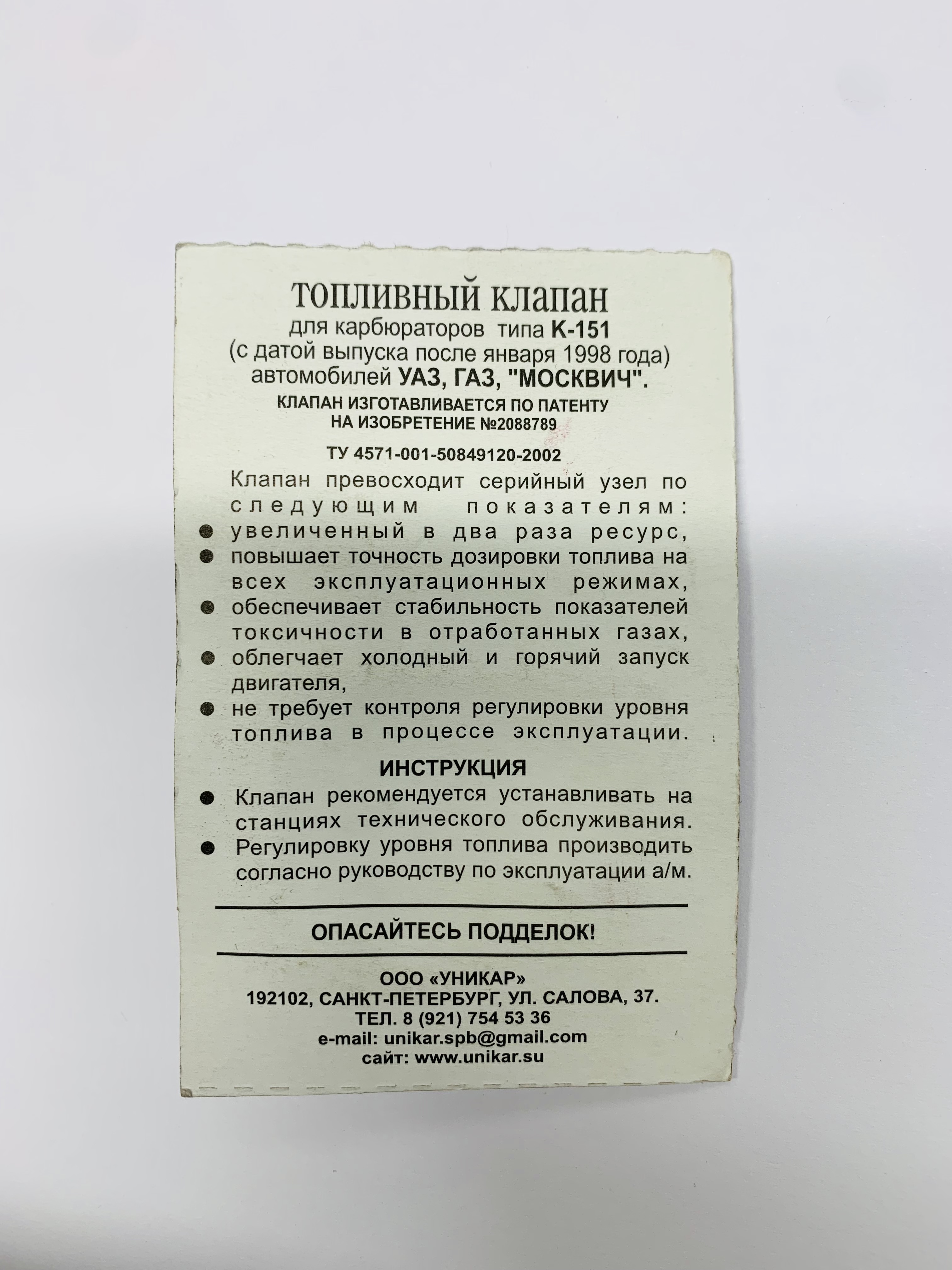 Schwimmernadelventil Unikar-3M